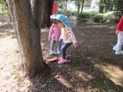 「どこかな~?」「ないよ~?」といつもはすぐに見つけてしまうカードも、広い公園の中では大苦戦。。。あまりにも見つからないと苦肉の策に違う色のカードを持ってくるという姿も見られましたよ(^^;)