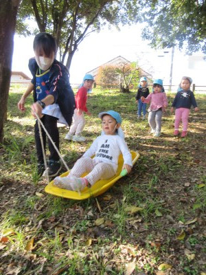 色集めゲームの後は、ソリを使って斜面滑りを楽しみます♪