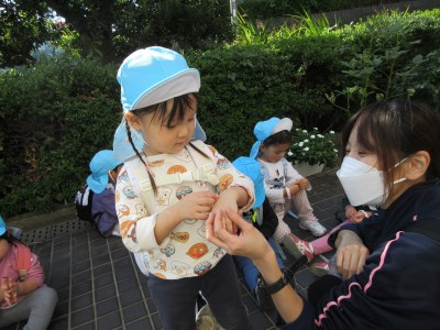 当日は登園時からどんなお弁当や水筒を持って来たのかご機嫌で教えてくれる子どもたち!!子どもたちの中では、リュックを背負ってきている時点から遠足がスタートしているようです(笑)