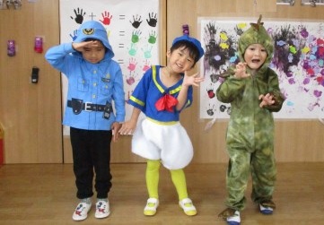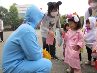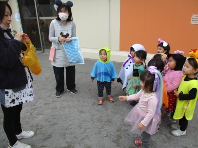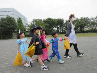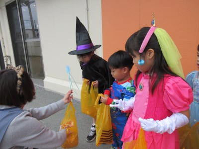 園庭でも「トリックオアトリートお菓子くれないといたずらしちゃうぞ」とみんなで言って