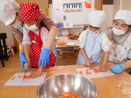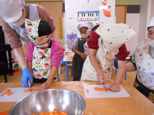 自分たちが切った人参が入ったカレーを沢山食べていましたよ。