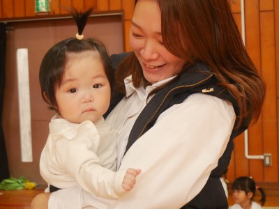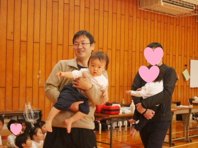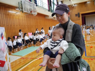 ひよこ組はお母さん、お父さんと一緒に開会式…!