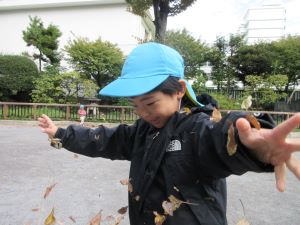 秋も深まり公園に落ちているたくさんの落ち葉を皆で拾いに行きました!