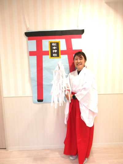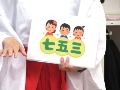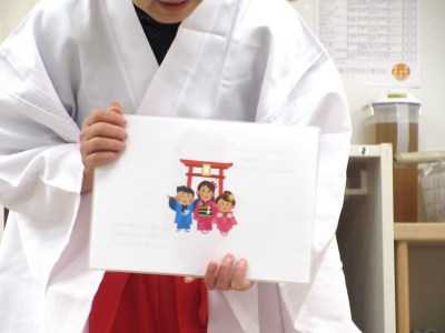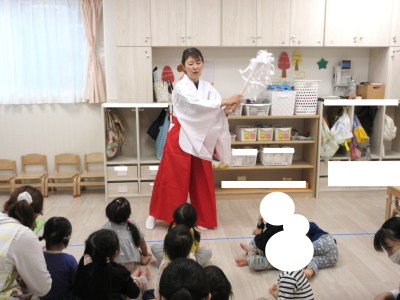 巫女さん姿で、各クラスに回り、七五三さんについてお話しをしました。