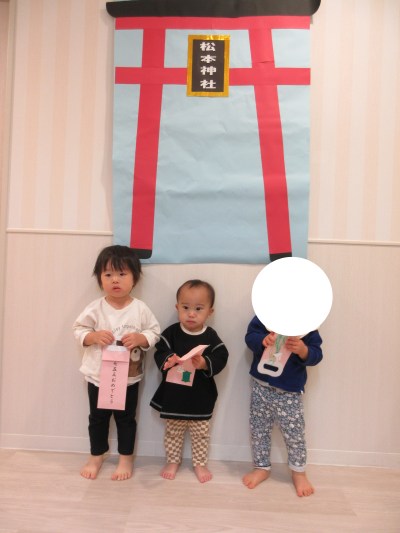 自分たちで作った「七五三袋」を持って、「ハイチーズ♪」