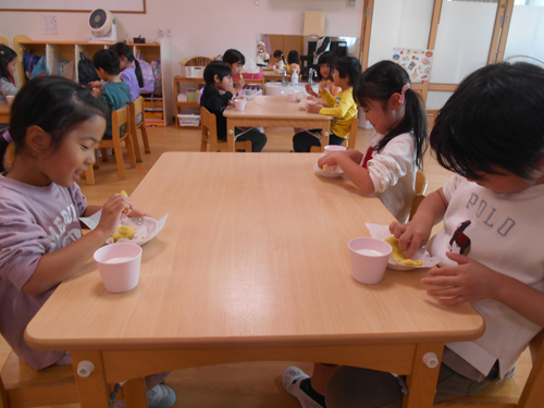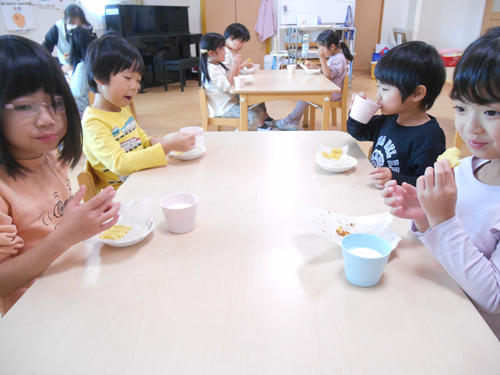 焼きあがったスイートポテトを食べると「自分で作ったからおいしい!」「楽しかった~!」との声が聞こえてきました。