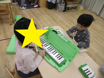 ピアニカで色々な音が出ることを喜び、少しずつ簡単な曲が弾けるようになってきました。