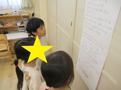 ひらがなを読みながら歌詞を覚えて、友だちと歌声が重なる事に喜びを感じています。