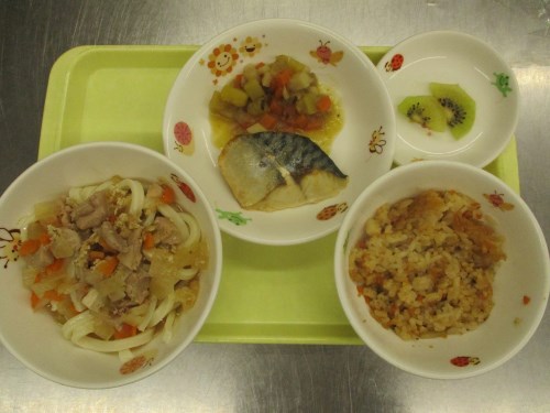 ・しっぽくうどん…鶏肉、野菜、油揚げを煮干しのだし汁で煮込みました。
