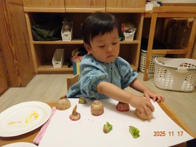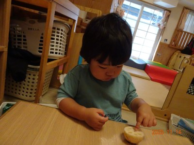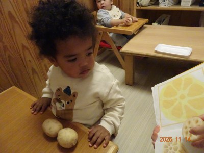 0.1歳児さんの11月の食育活動は【れんこんの観察】でした!