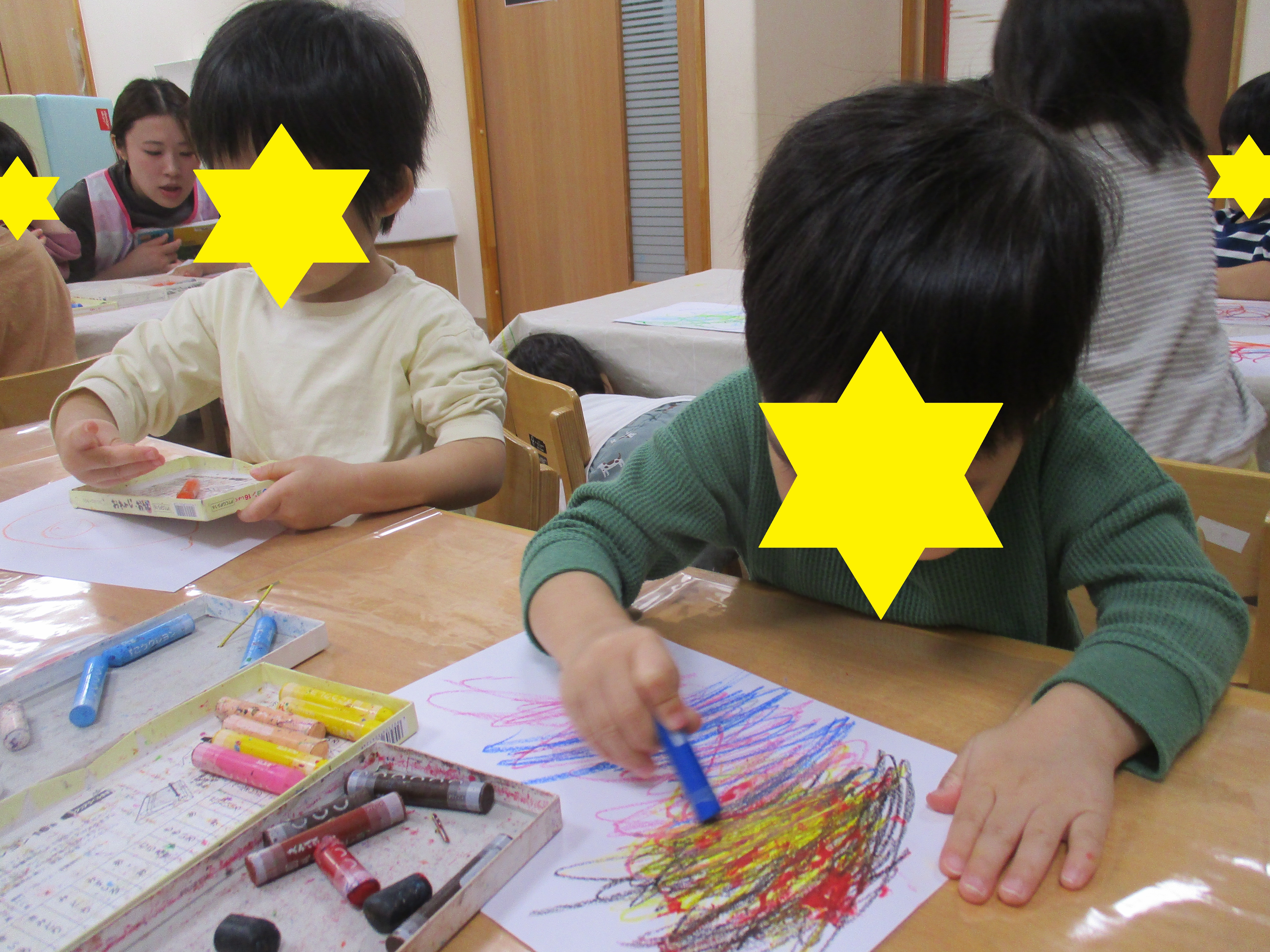 自分で描いては嬉しそうにみんなに見せています。