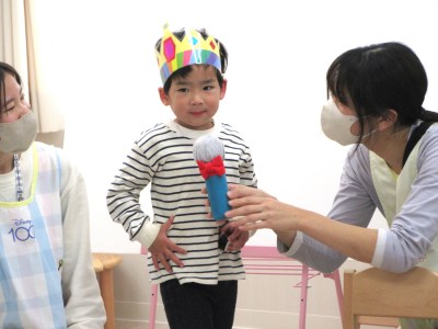 マイクを向けられると、ちょっぴり緊張しちゃうお友だちもいましたが、「〇〇歳です」と答えたり、指で年齢を教えてくれました♡