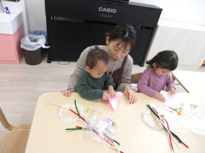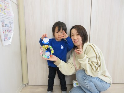「せんせーい!みて!できたよ♡」と、出来上がりのリースを嬉しそうに見せてくれましたよ♪
