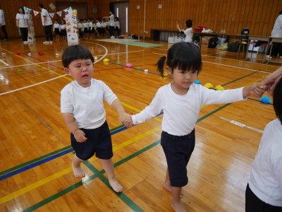 お父さん、お母さんと離れてちょっぴり不安で泣いてしまう子も…