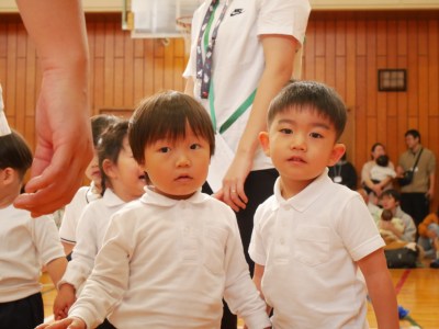 開会式前に園児席で集合!ドキドキ…