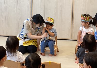 みんなでお祝いの歌を歌って、先生から出し物のプレゼントもあり、毎月楽しいお誕生会をしています。