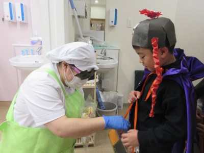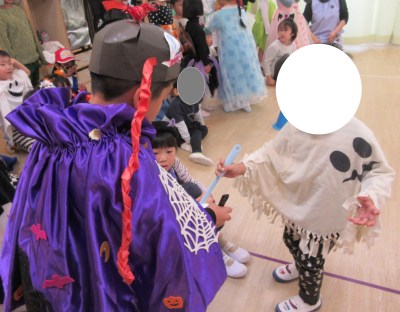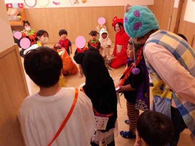 トリックオアトリート!!給食室の先生、そして園長先生からもお菓子をもらいます♪