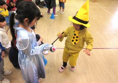 園内を仮装して練り歩き、シールを持っている先生を探すゲームです。