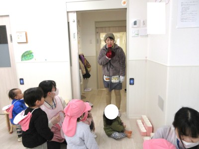 「♪いしや~きいも~おいも~」と、園長先生が各クラスに回ります。