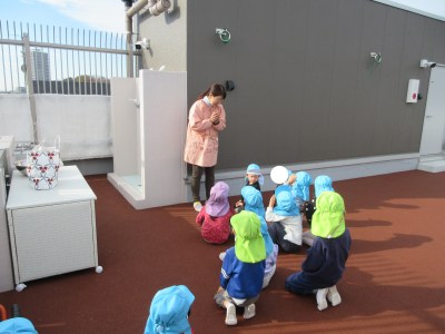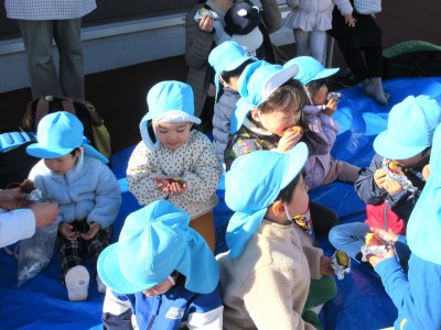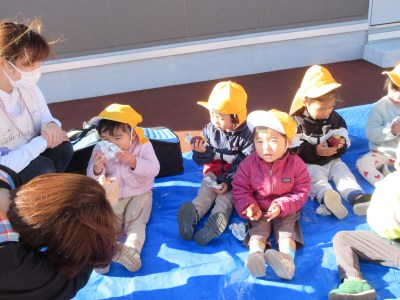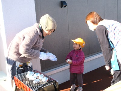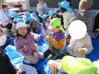 先日、屋上園庭で、やきいもパーティーを行いました。