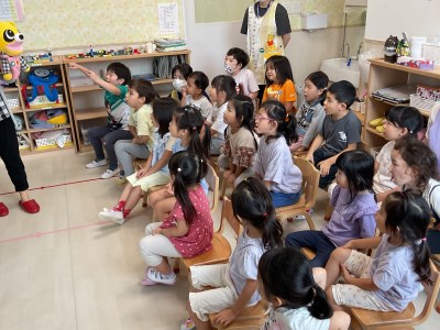 最初に、うさぎ・ぱんだ・きりんぐみさんが交通安全のお話を聞きました。