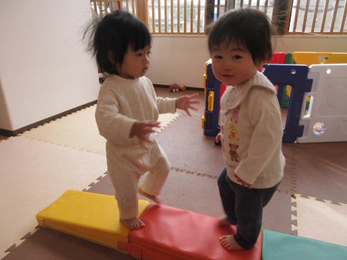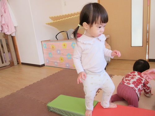 一本橋のマットを歩く子もおり、最後まで渡りきると嬉しそうに笑っていました。