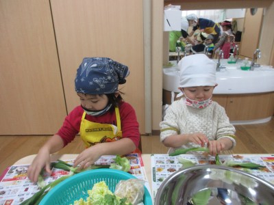 先日、食育活動の一環として、ほしぐみで野菜ちぎりを行いました!