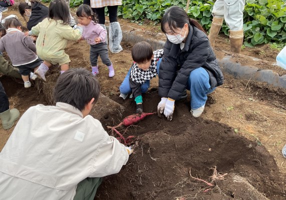 この日収穫したのは、苗の頃からこどもたちが成長を楽しみに見守ってきたさつまいもです。
