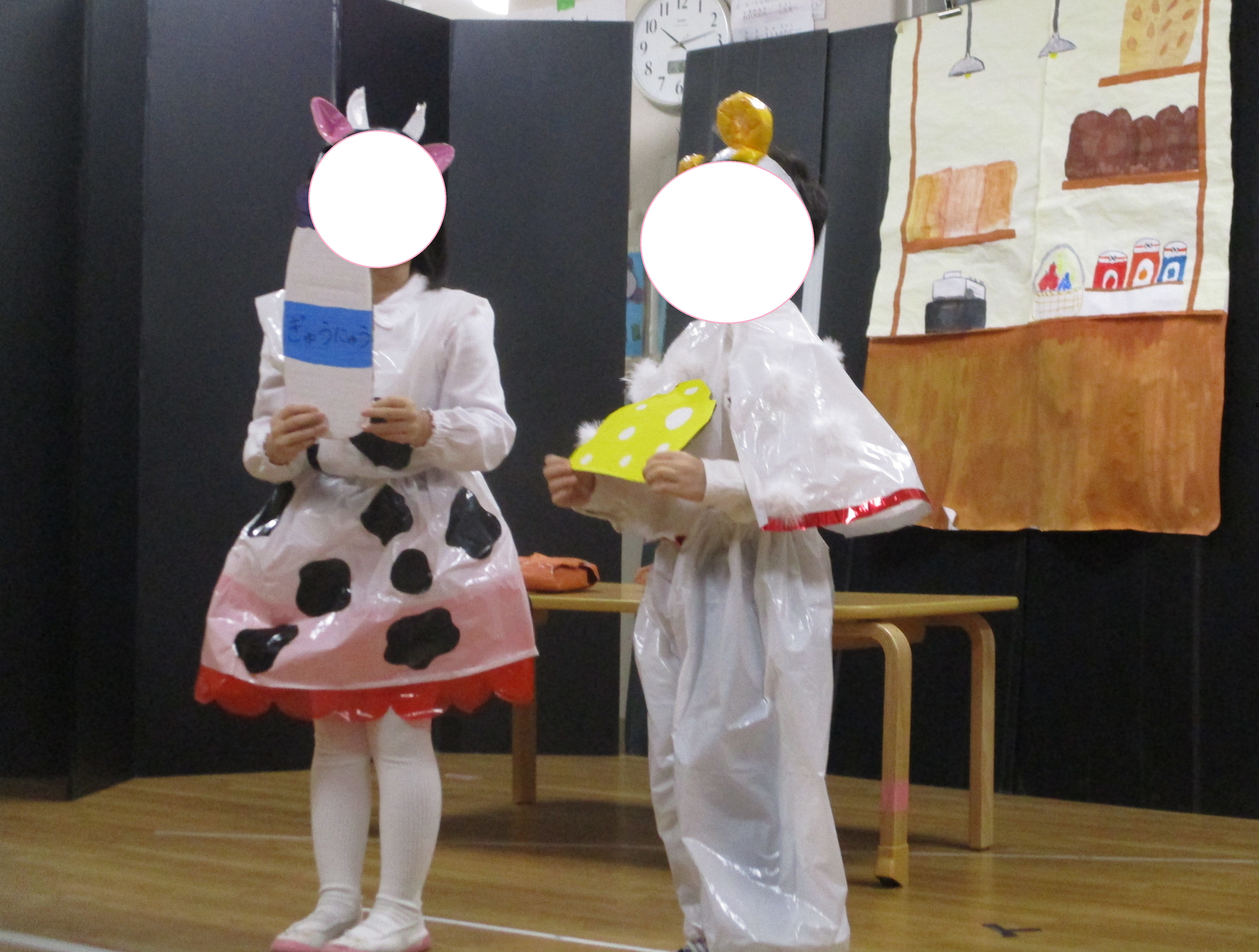 「ここはこのほうがかわいいよ」「こんなのはどう?」とみんなで意見を出し合いながらほのぼのした優しい劇になりました。