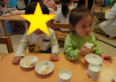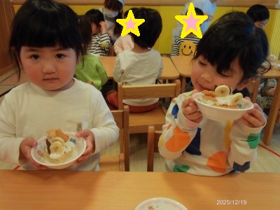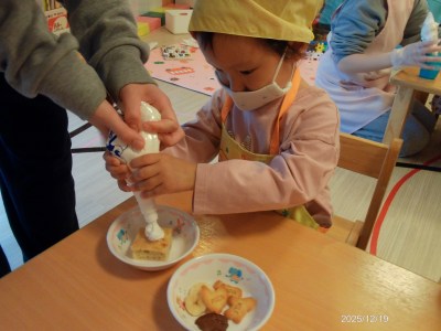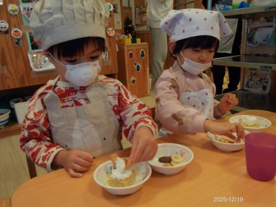 2歳児クラスの12月の食育活動は【ケーキのデコレーション】でした☆