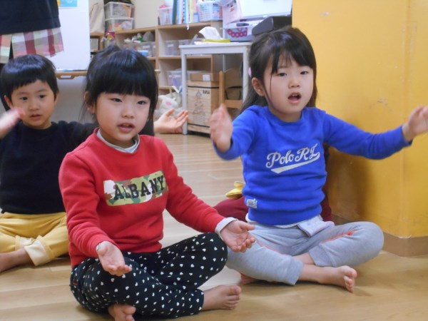 きょうは、うさぎ・ぱんだぐみさんが ヨガをおこなったので
