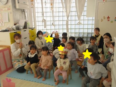 今日はお誕生日会の主役でドキドキな1日。主役の2人にはたくさん大きな拍手を送りました☆