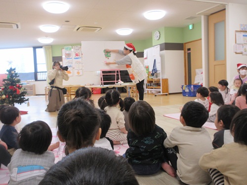 皆で『あわてんぼうのサンタクロース』を歌ってからパネルシアターを見ました。