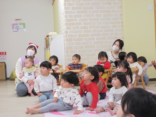 登園してから「クリスマス会だね」「サンタさん来るかな」とワクワクした様子の子どもたち。