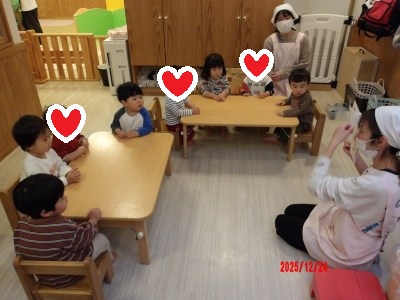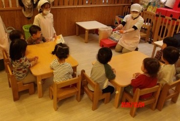 栄養士が本物のみかんを持ってくると興味津々な子どもたち☆