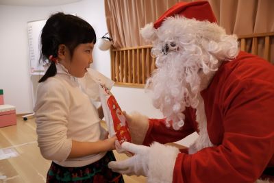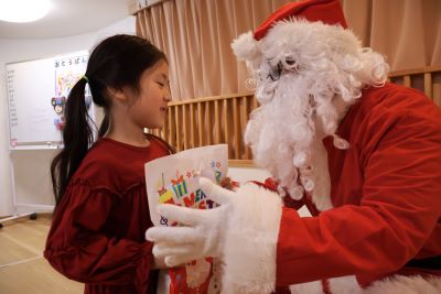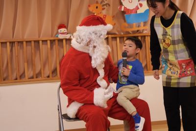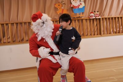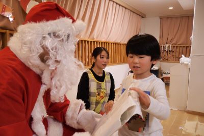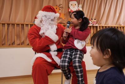 クリスマス会が始まり、絵本を読んだりクイズをしていると・・・