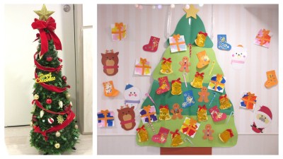子どもたちが作ったオーナメントで大きなツリーが完成♪