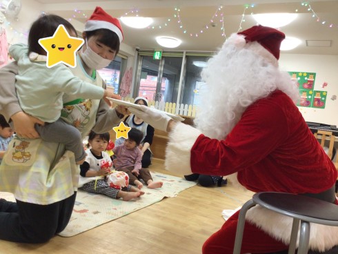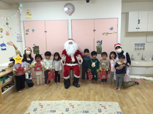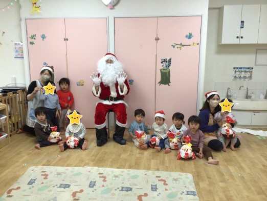 どこからか鈴の音が聞こえてきて、市が尾園にもサンタさんが来てくれました!