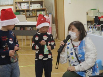 サンタさんへインタビューをして嬉しそうにする子どもたち(^^)/