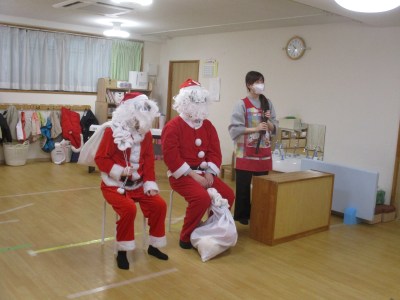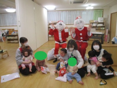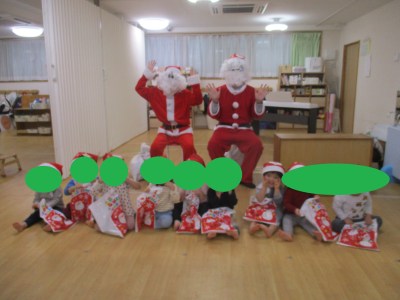 サンタさんの袋から次々と出てくるプレゼントを見て誰のプレゼントか予想しながら楽しむ姿が見られましたよ★