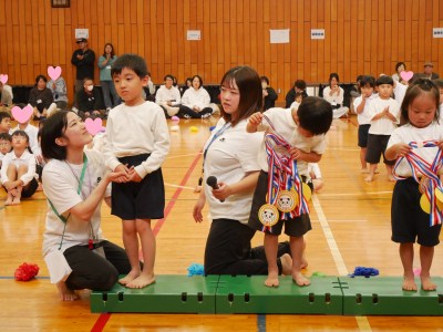 みんなの写真つきのメダルを代表のお友だちが受け取ります。