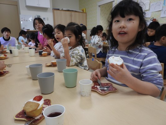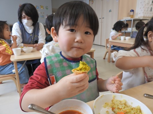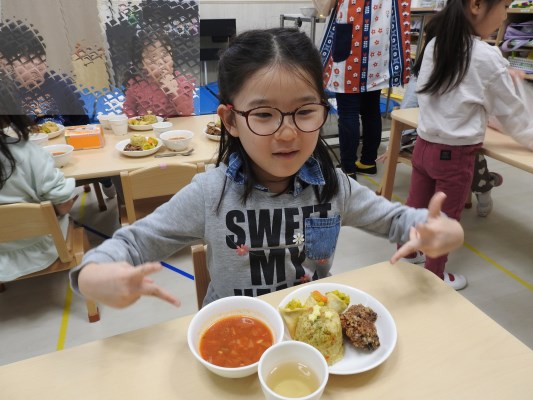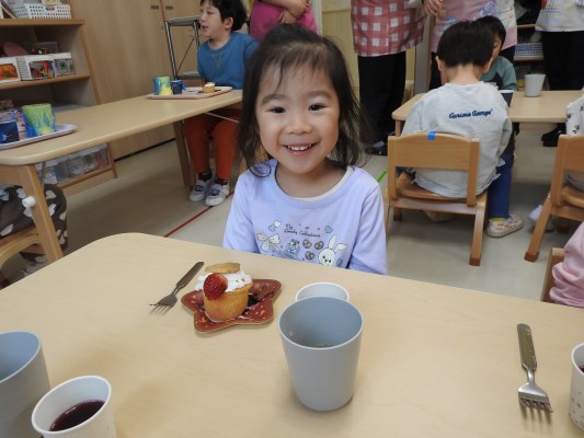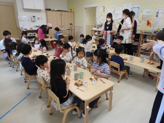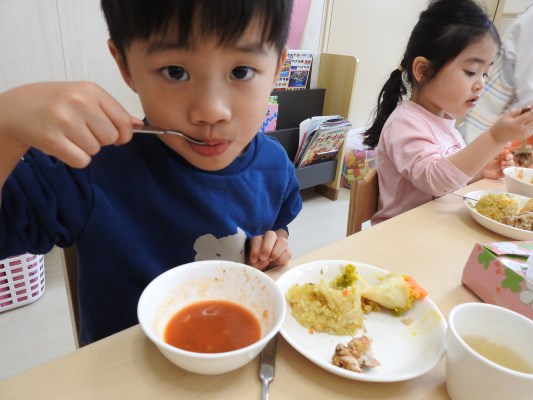 他のクラスのお友だちと先生と一緒に食べたので、とても楽しい時間になりました。
