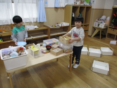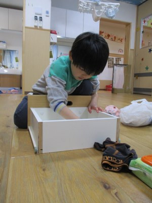 早めの休みに入ったお友だちもいるため、2名の登園でしたがお部屋の大掃除をしました。