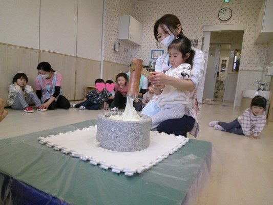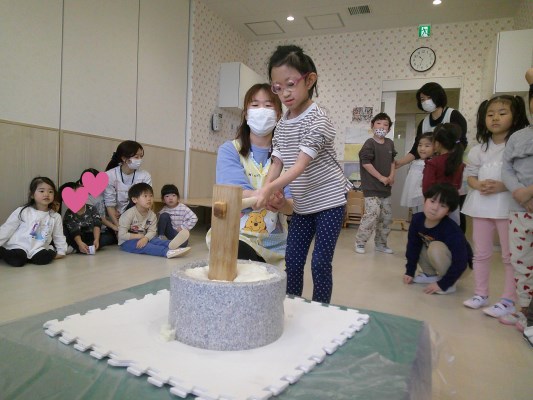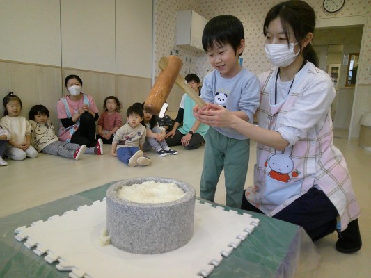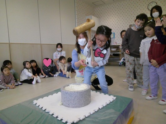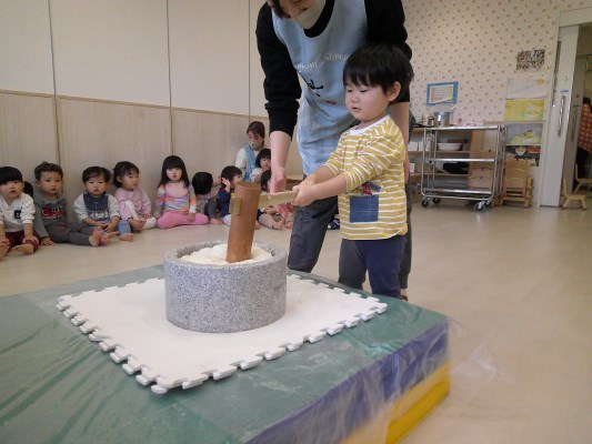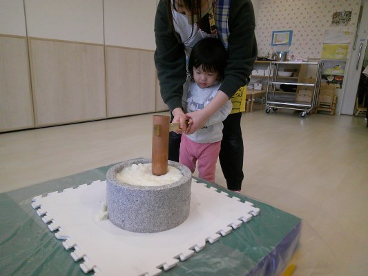 こどもたち全員が順番について、立派なおもちが出来上がりました。