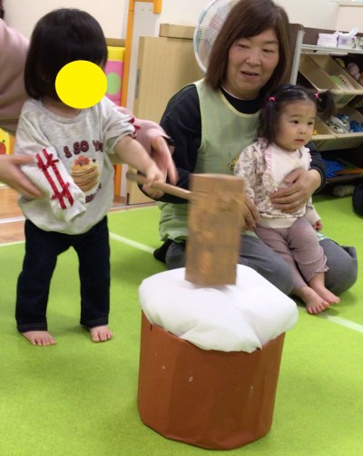 0歳児さんは、杵を持つところからですね(* ´艸`)クスクス