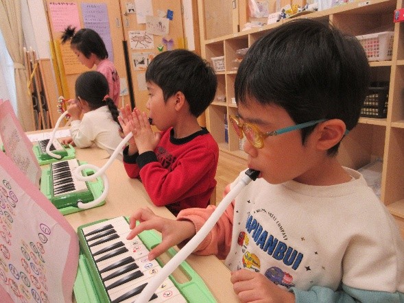 ・テーマ設定理由・・・進級当初からピアニカに興味を持ち、やってみたいと意欲的な姿が見られた為。