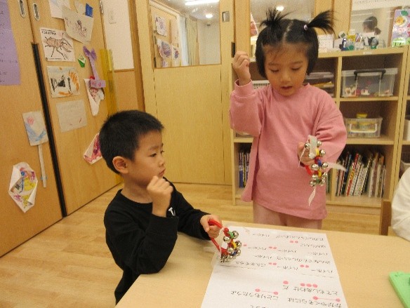 11月 様々な楽器を使って実際に自分たちも楽器遊びを行う。