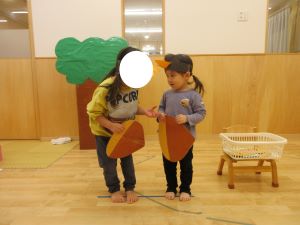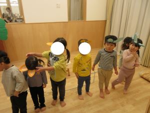 ・活動の内容・・・絵本を読んでいるときは一人ひとりの創造力だったが、友達と一緒に劇遊びをすることで絵本の