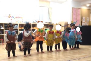 ・活動中の子ども達の姿・・・自分だけでなく、友達の役にも興味を持ち、物語に入り込むこどができた。劇遊び中も