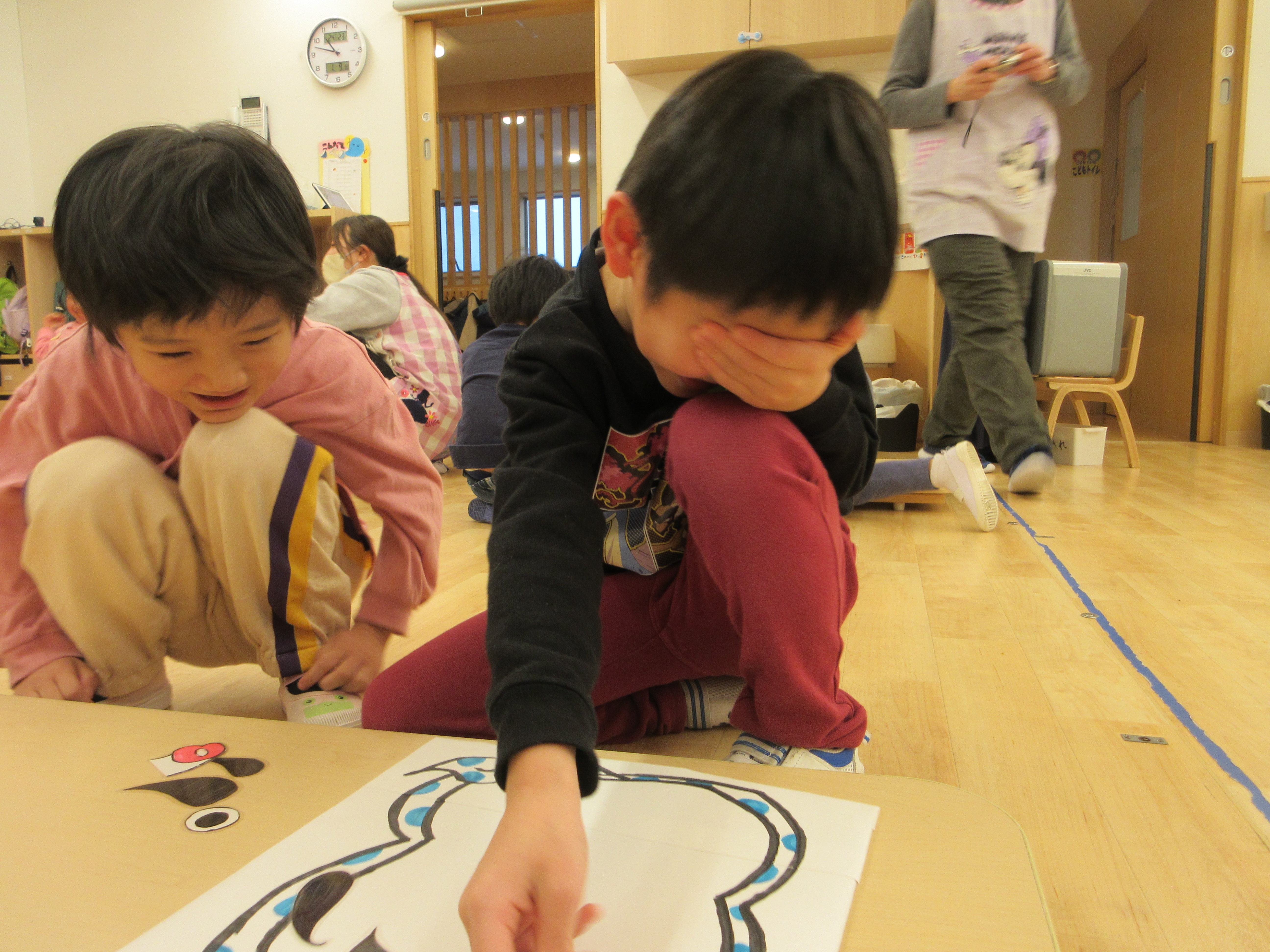 みんな目を瞑りながら挑戦し、いろんなところから楽しい笑い声がたくさん聞こえてきましたよ♪